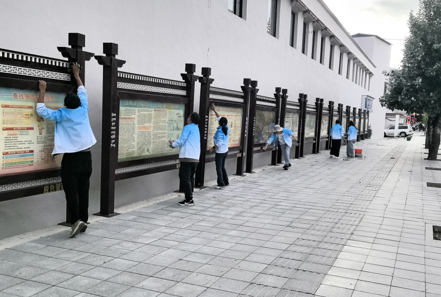 活动中,按照“全覆盖、零死角、无遗漏”的标准,积极对所有角落的垃圾、烟头、宣传栏污渍等进行彻底清扫,对卫生死角进行全面整治,以“党建红”引领“法治蓝”,让法治阵地既“干净整洁”又“鲜活有感”。(