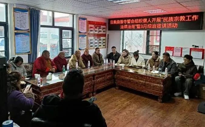近日,曲松县委常委、统战部部长德吉前往日果曲德寺管会开展自治区党委十届五次全会暨区党委经济工作会议精神宣讲。寺管会干部和寺庙僧人共计16人参加。