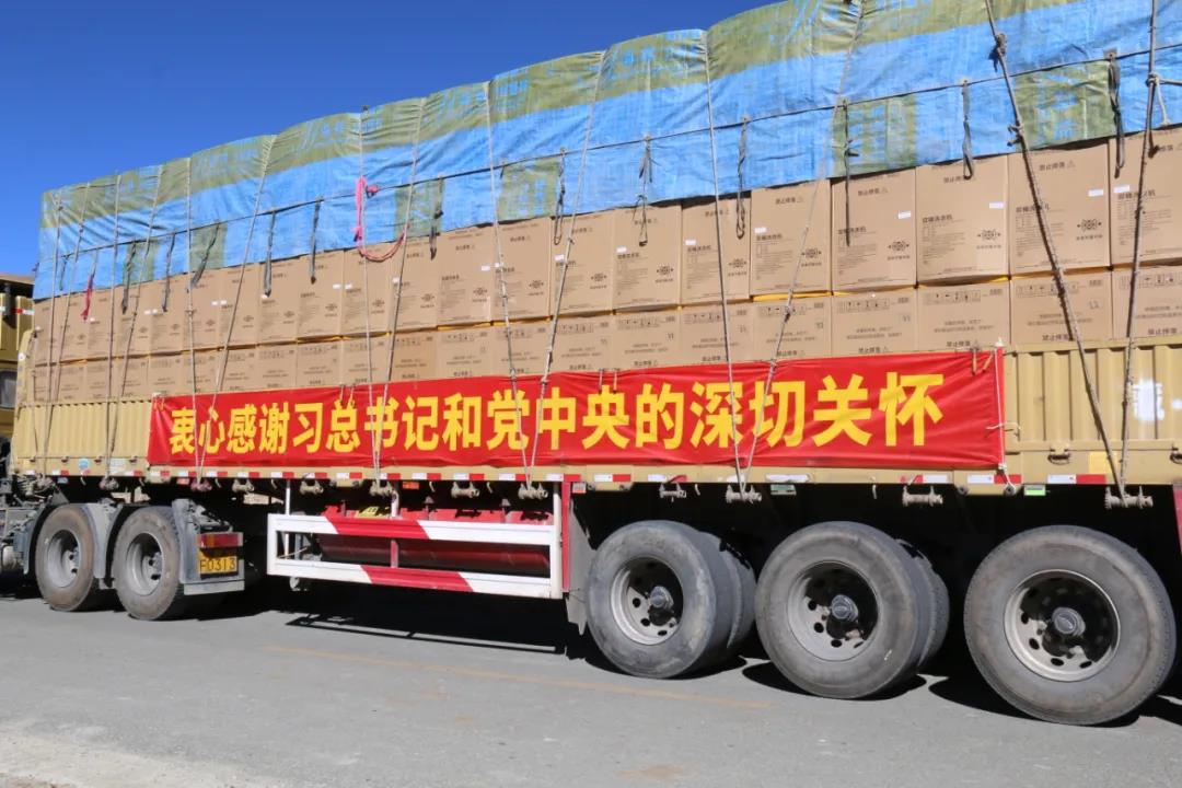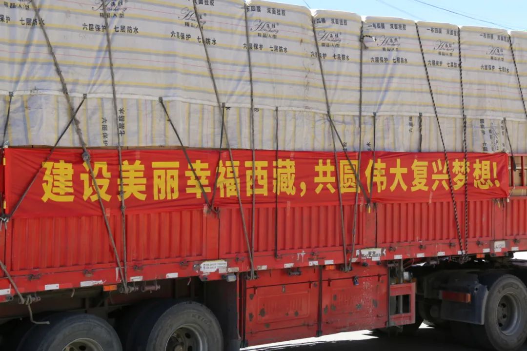 在邱多江乡色吾村,群众身着鲜艳的民族服装,早早的等候纪念品的运达。当悬挂“衷心感谢习近平总书记和党中央的亲切关怀”“建设美丽幸福西藏 共圆伟大复兴梦想”横幅的运输车辆抵达时,群众第一时间向工作人员敬献哈达,并为运输车辆悬挂哈达,表达内心的感激之情。看到中央代表团赠送的洗衣机到了,群众都高兴异常,自发的组织搬卸工作,仅仅十多分钟,分发给色吾村的157台洗衣机就搬卸完毕。