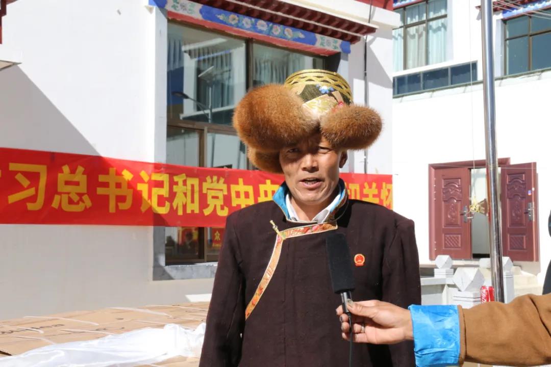 色吾村群众洛桑顿珠说:“收到中央代表团赠送的洗衣机我心里很高兴很激动,感谢党中央和习近平总书记对我们农牧民群众的关心关怀。在以后的生活中,我将时刻牢记党的恩情,以勤劳双手创造美好幸福生活。”