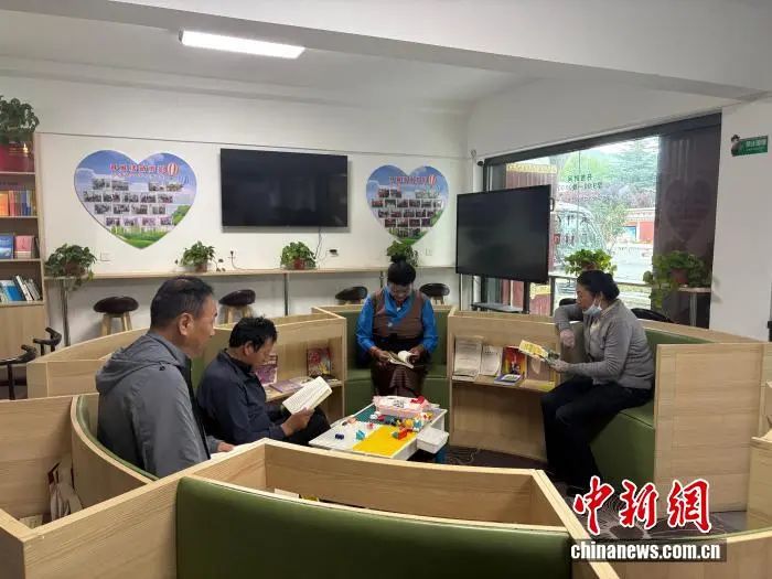 7月25日,拉萨市城关区鲁固社区党群服务V站内,当地居民在阅读区看书。 中新网记者 张东方 摄
