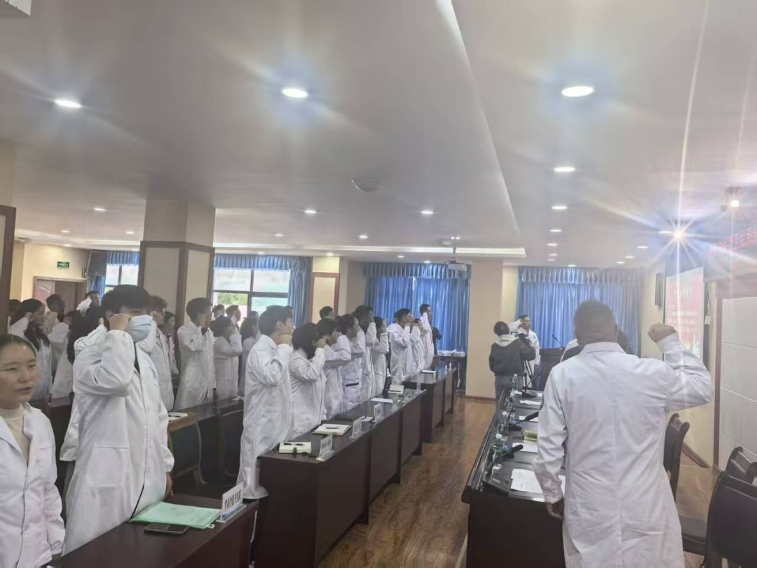 活动重温《中国医师宣言》和《医务人员职业道德准则(2025年版)》。次仁群培向全县卫生健康战线上的全体医师,转达县委、县政府的诚挚问候和崇高敬意。指出,要精进医术,勤学不辍。树立终身学习理念,紧跟医学前沿,钻研新技术新方法,以精湛医术筑牢群众健康防线。要涵养医德,仁心为本。恪守“医乃仁术”古训,坚持以患者为中心,尊重关爱、耐心细致,构建和谐互信的医患关系。要勇于创新,锐意进取。积极投身医改实践,探索服务新模式,加强学科建设和人才培养,推动紧密型县域医共体高质量发展。