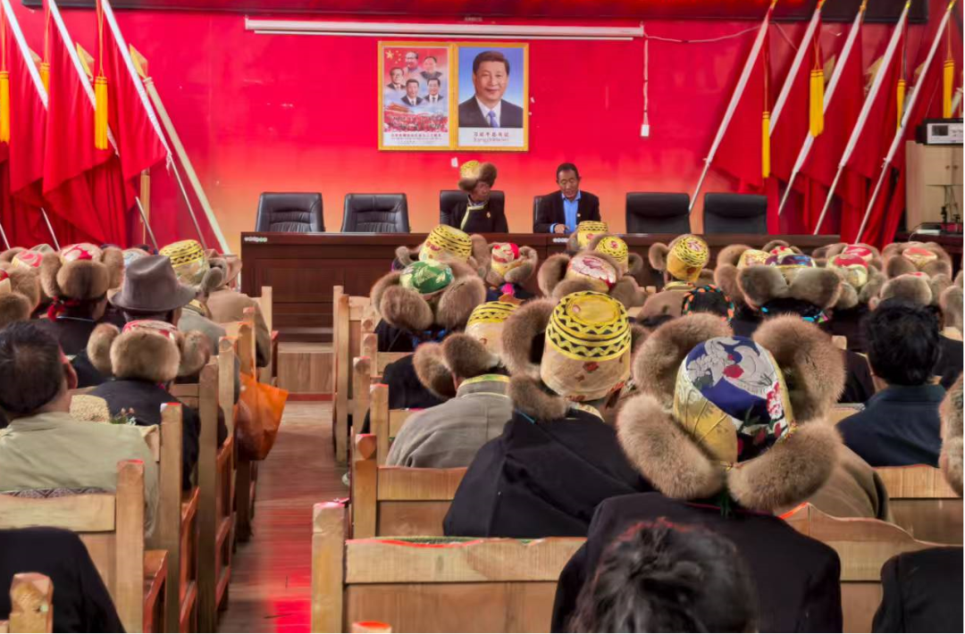 基层宣讲员围绕《看着北斗星走不迷路 跟着共产党走会幸福》主题,为全村党员、村民代表及群众带来了一场接地气、有温度的宣讲。宣讲结合琼嘎村村民的亲身经历与西藏60年的发展变迁展开讲述。宣讲从村民最熟悉的“身边事”切入,既回忆了过去村里“出行靠步行、照明靠油灯、看病靠土方”的艰苦岁月,也细数了近年来在党的领导下,村里通了水泥路、安装了太阳能路灯、办起了村卫生室、可以领养老金、能报销医药费。讲解了国家对西藏的乡村振兴、生态保护、民族团结等政策,分享了村里致富带头人依靠藏药材增收致富的真实案例,让“跟党走才能有好日子”的道理通过一个个鲜活故事深入人心。