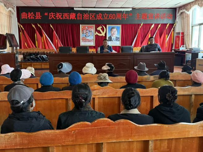 9月18日,曲松县政协党组书记、主席米玛次仁前往玛如村开展“庆祝西藏自治区成立60周年”宣讲活动。