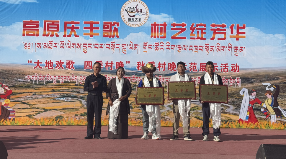 金秋九月,青稞飘香满粮仓。9月23日,曲松县11人制足球场上,村民的欢笑声此起彼伏,由曲松县文化和旅游局主办的“高原庆丰歌 村艺绽芳华”——“大地欢歌 四季村晚”秋季村晚示范展示活动,在这热闹的氛围中拉开了帷幕。作为展现曲松乡村文化活力、彰显乡村振兴丰硕成果的重要平台,本次活动集结了18支村级文艺演出队,大家同台竞技、各展风采,吸引了1000余名村民到场观看,最终为大家呈现了一场既有乡土独特韵味,又饱含时代鲜活气息的文化盛宴。
