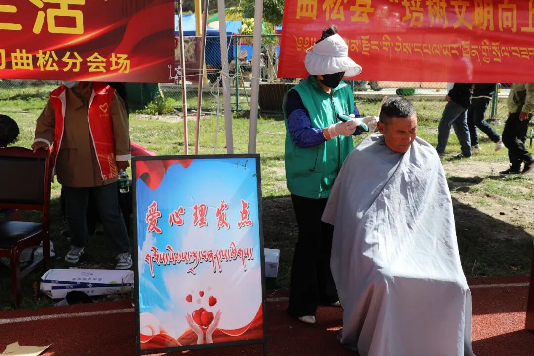 县新时代文明实践中心“爱心理发”和“移动爱心照相馆”品牌志愿服务活动也在活动现场同步开展。志愿者免费为有需要的群众提供理发、拍摄证件照等服务,让志愿服务接地气有温度。