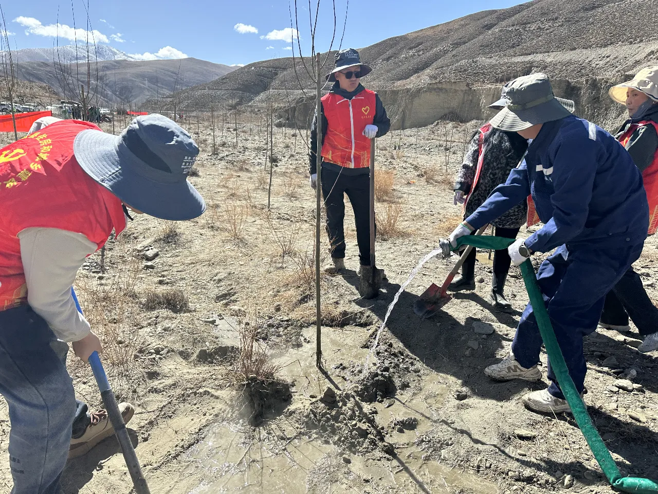 活动现场,干部职工热情高涨、分工协作,挥锹铲土、扶苗围堰、提水浇灌,每道工序有条不紊,一派繁忙有序的劳动景象。县自然资源和林业草原局工作人员全程指导,严格按照栽植技术规范把关质量,确保栽一株、活一株,种一片、成一片。经过共同努力,一棵棵新苗整齐挺立,为春日大地增添了浓浓绿意。