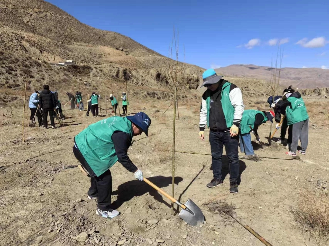 此次集中植树活动累计参与人员400余人次,栽植青杨、旱柳、竹柳、云杉等乡土树种10000余株,植树面积150余亩。