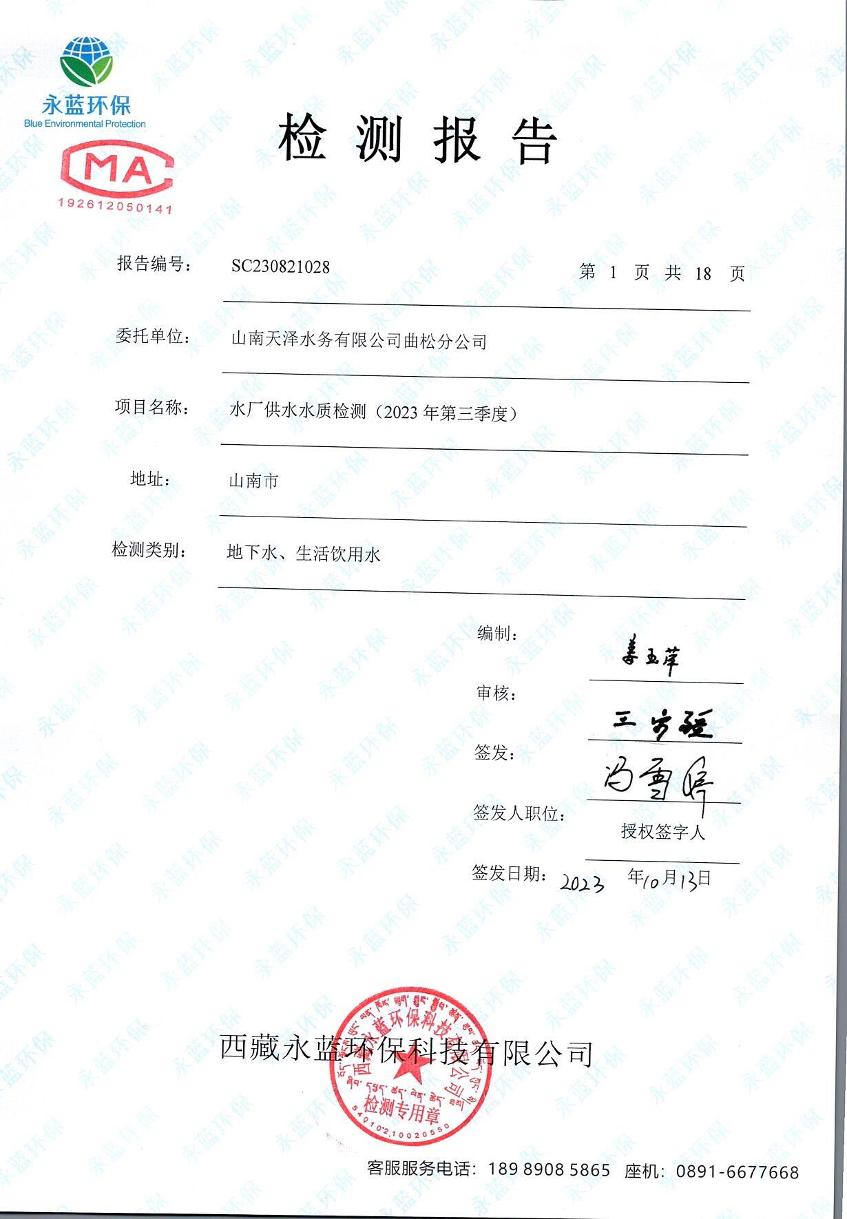 水质检测报告