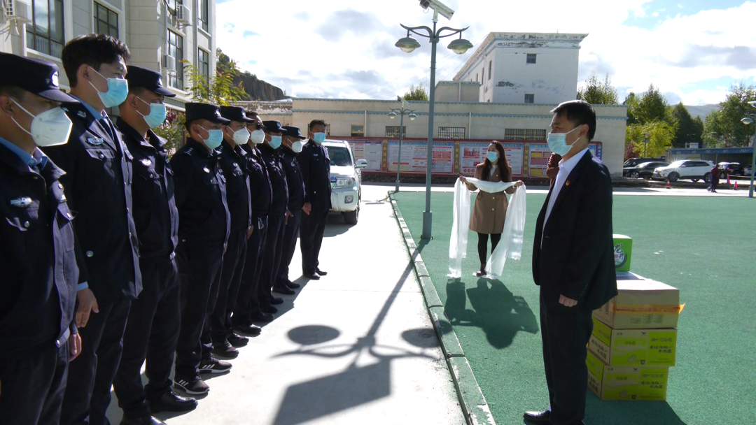 每到一处,慰问组与他们亲切交流,详细询问他们的工作生活情况,并表示,国庆已至,党的二十大召开在即,做好维稳安保和疫情防控工作责任重大。自全区发生疫情以来,广大党员干部、维稳战线上的同志以及广大医护人员夜以继日坚守工作岗位,坚决扛起了保护群众生命安全和身体健康的重任,展现了最美“逆行者”的使命担当,慰问组对大家的辛勤付出和艰苦努力表示衷心的感谢和崇高的敬意。