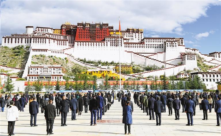 西藏自治区庆祝中华人民共和国成立73周年“升国旗、唱国歌”仪式在拉萨举行