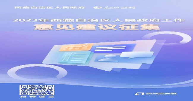 江山就是人民,人民就是江山。为全面贯彻党的二十大精神,深入落实西藏自治区第十次党代会精神,切实提升政府决策科学化、民主化水平,增强政府决策透明度和公众参与度,从2022年10月25日至12月20日,西藏自治区人民政府联合人民网依托“领导留言板”开通政府工作征求意见栏,面向社会公开征集关于2023年全年工作的具体意见及未来五年的总体建议。