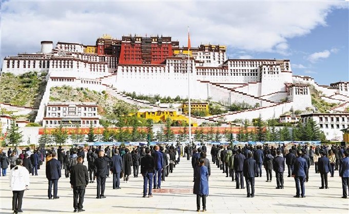 西藏自治区庆祝中华人民共和国成立73周年“升国旗、唱国歌”仪式在拉萨举行