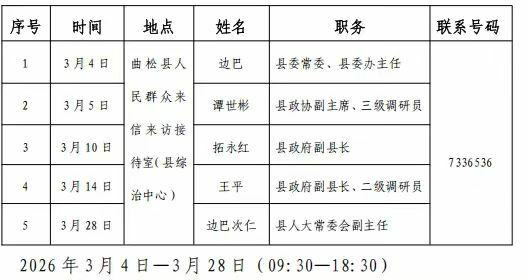 曲松县党政领导干部接访公告