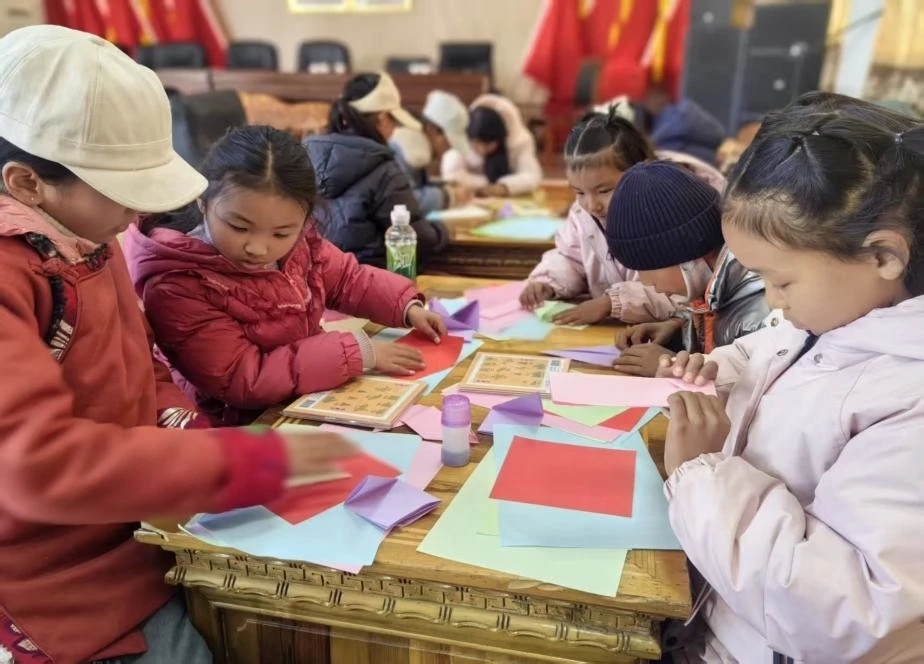 曲松县民政和退役军人事务局工作人员同湘雅社工在下洛村寒假托管班开展手工+绘画主题比赛