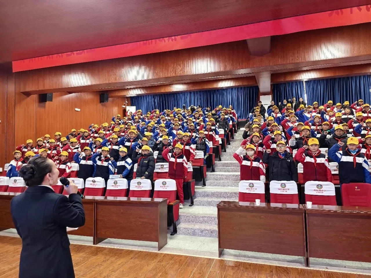 近日,县人民法院组织干警走进曲松镇小学,开展“3·28”爱国主义与“开学第一课”法治宣传系列活动,以沉浸式、互动式体验,为师生送上一堂兼具爱国情怀与法治力量的成长课。活动在庄严的升国旗仪式中拉开帷幕。全体干警与师生整齐列队、肃立注目,伴随着雄壮的国歌,五星红旗冉冉升起,共同接受爱国主义精神洗礼,厚植爱党爱国爱社会主义情怀。在参观红色文化长廊时,小小讲解员们声情并茂地讲述革命故事,干警们驻足聆听、交流感悟,在红色印记中感悟初心使命,凝聚奋进力量。法治宣传环节,干警结合小学生认知特点,围绕预防校园欺凌、未成年人保护、日常行为规范等内容,用通俗易懂的语言、贴近校园的案例,讲解法律知识与自我保护技巧,引导学生明辨是非、敬畏法律。互动问答环节气氛热烈,同学们踊跃举手、积极作答法律相关小问题,在趣味互动中巩固法治知识。干警为参与答题的学生送上精美礼品。活动最后,干警带领全体学生进行拒绝校园欺凌集体宣誓。同学们高举右拳、庄严承诺,坚决向校园欺凌说“不”,争做文明守纪、友善互助的新时代好少年,以青春誓言筑牢校园安全防线。此次活动将爱国主义教育与法治宣传深度融合,既传承红色精神,又播撒法治种子。
